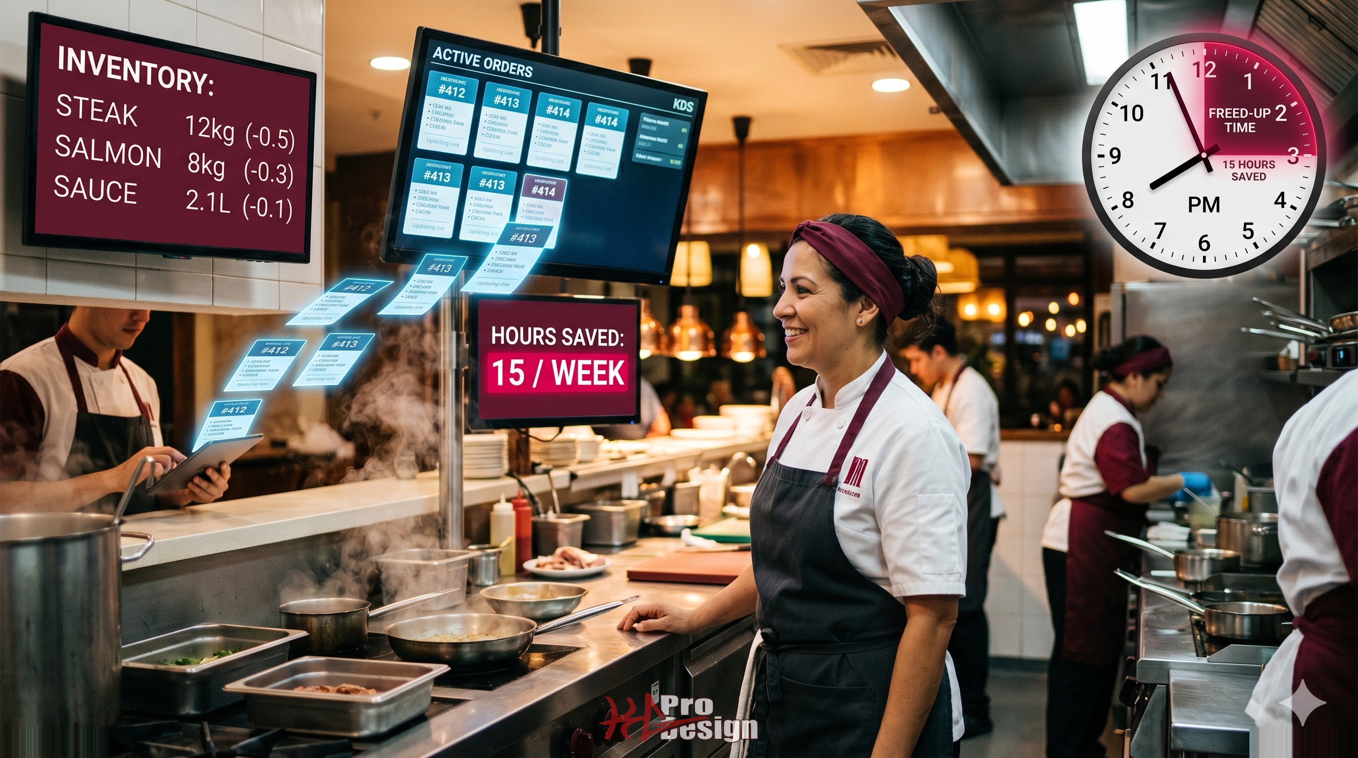 15 hours per week reclaimed. The owner's time previously spent on manual data entry, spreadsheet reporting, multi-platform menu updates, and clipboard inventory counts was returned to running the business. Over a year, that represents nearly 800 hours, the equivalent of twenty full work weeks.